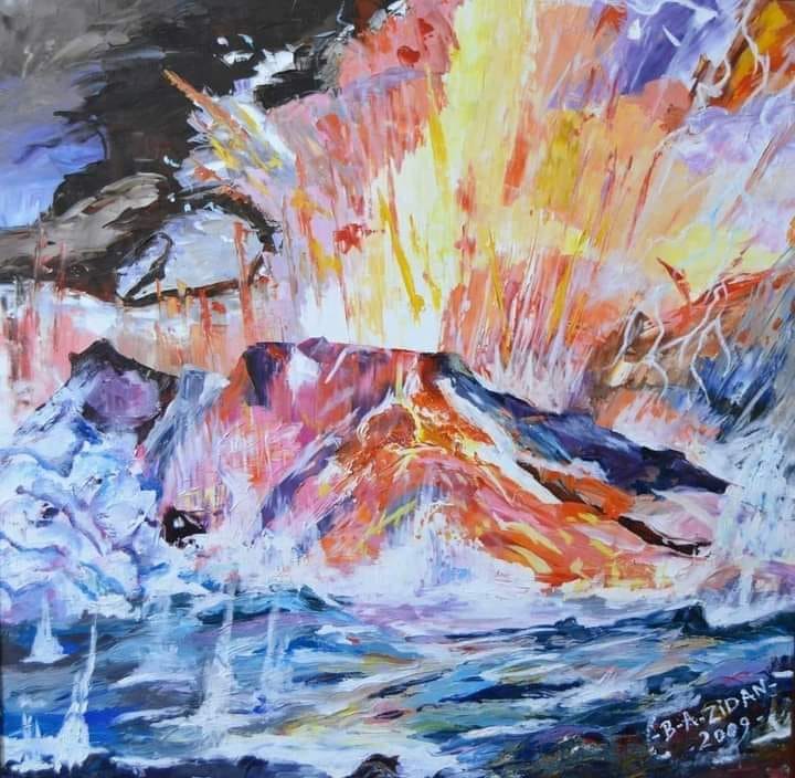 اللوحة للفنان السوري المبدع بسام ابو زيدان / Bassam Abou Zidan / …. عنوانها ” البركان “.